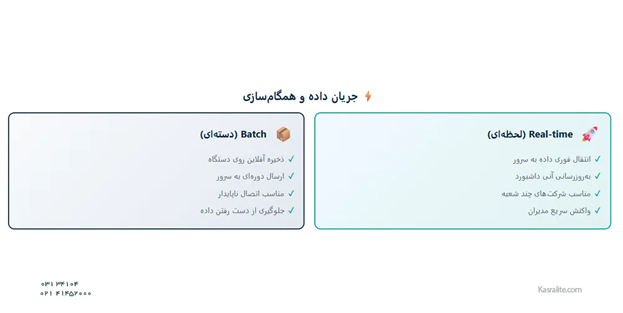 - دادهها بین دستگاهها و سرور بهصورت Real-time همگام میشوند.